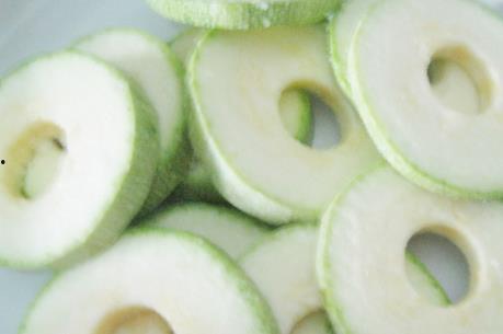 2. 瓜皮朝下,轻松切片:将白瓜放在案板上,瓜皮朝下,用刀从上往下轻轻切片,这样切出的瓜片更加整齐,而且不会弄脏案板。